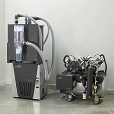 Power your dental treatment rooms with function and efficiency you can count on to improve patient interactions and deliver a high quality of care. Use up to 83% less electricity than other systems with the PowerVac G and trap 99.9997% of compressed air contaminants with the PowerAir Oil-Less Air Compressor.
